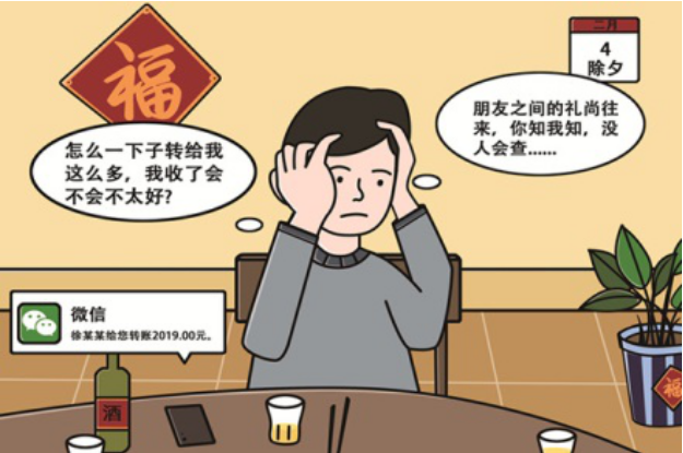沒過多久,孫某某收到了徐某某的微信轉賬“2019”,自己發給他的“20.19”翻了個百倍,足足多了1998.81元!“朋友之間的禮尚往來,你知我知,沒人會查……”孫某某在僥幸心理作祟下,便心安理得地收下了。