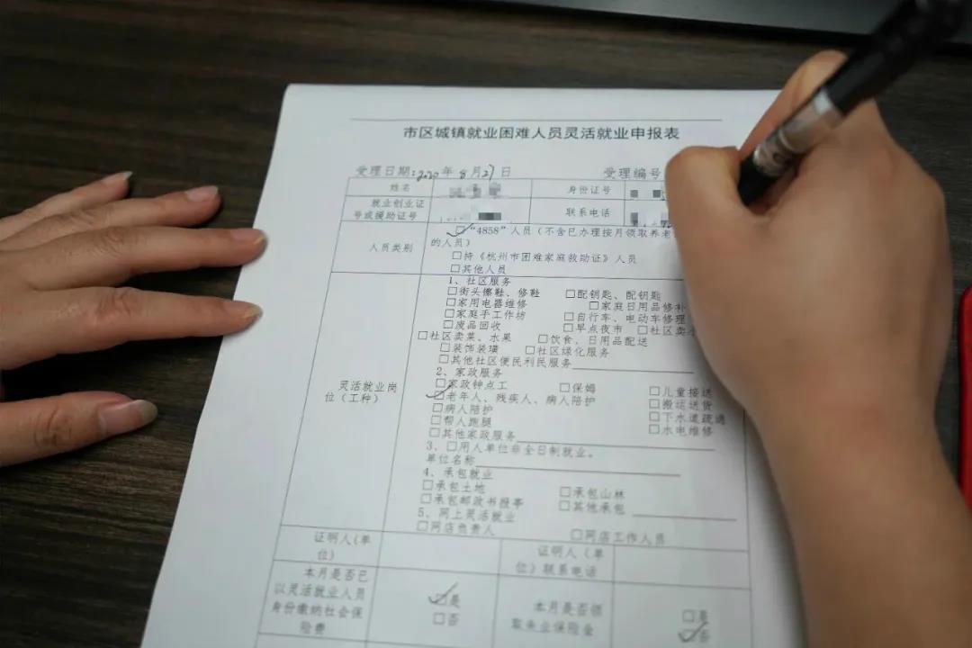 ▲城鎮就業困難人員填寫《“靈活就業補助”申請表》并通過審批后,方可領取“靈活就業補助款”