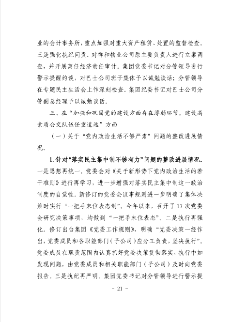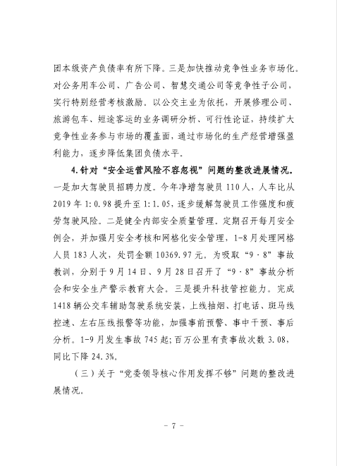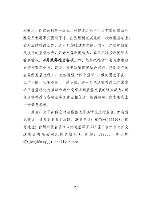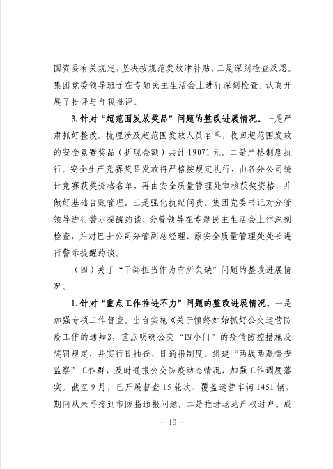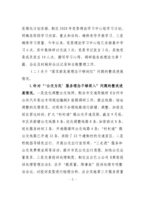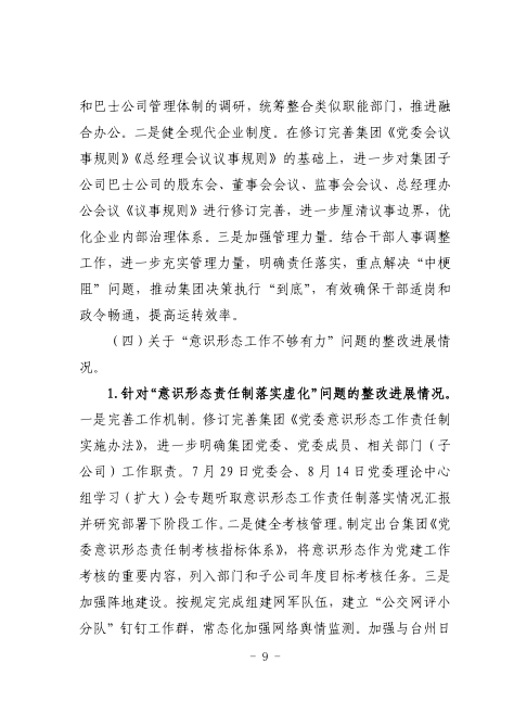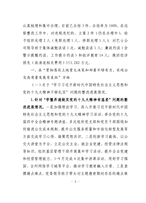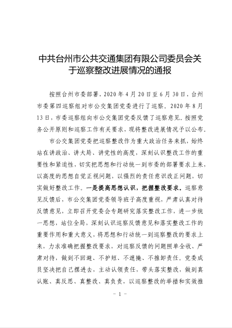 中共臺州市公共交通集團有限公司委員會關于巡察整改進展情況的通報