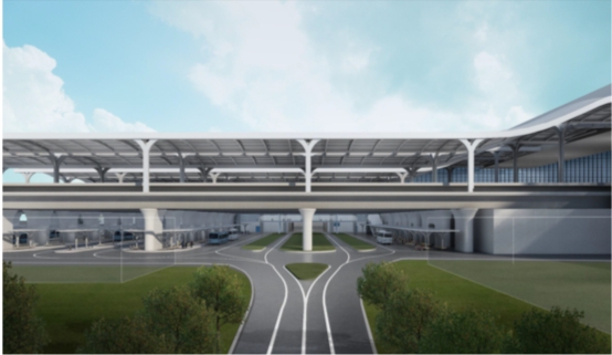 臺州站橋下空間交通利用項目位于臺州站鐵路橋南、北側,含公交車場和出租車場兩部分。公交車場約29910㎡(其中:公交車場26282㎡、候車廳2737㎡、管理用房891㎡),出租車場約4789㎡(車場3893㎡、候車廳896㎡);候車廳與候車站臺間設置110m串連人行天橋。本項目的建設可有效解決公交停車難、候車難等問題,為人流快速集散提供解決途徑,改善市民公交出行美好體驗,也是為高效推進“公交都市”創建的務實之舉。