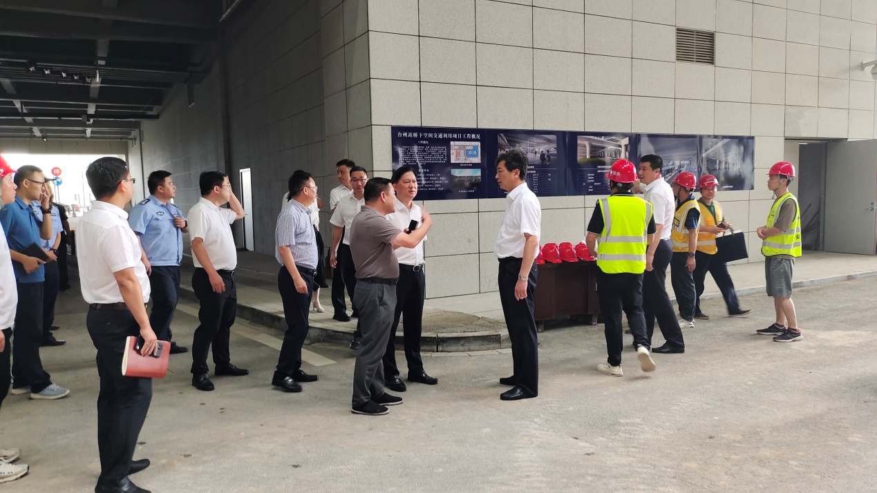 2023年8月3日下午,林先華常務副市長帶隊來到臺州站橋下空間交通利用項目現場檢查指導工程建設工作,市鐵辦、市自規局、市綜合執法、市交通局、市交警局、市城投集團、市公交集團、杭紹臺鐵路公司、臺州站等相關單位負責人參加。