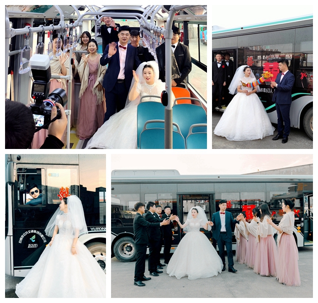 和熙的陽光灑在喜慶的公交車上,那天的洪家東站,空氣里都洋溢著幸福的味道。