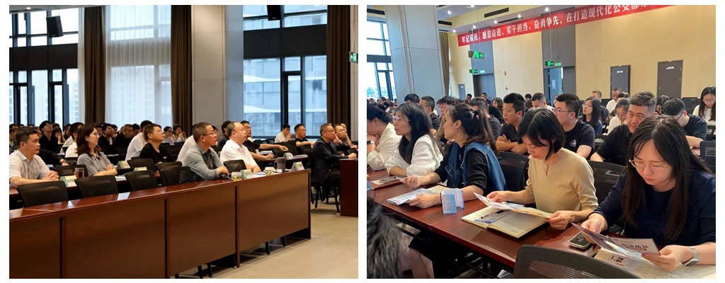 本次會議邀請椒江區消防救援大隊宣傳干事朱鮫泓前來授課。集團領導班子,公務用車公司,校車公司,巴士公司各車隊、修理公司,公交TOD大廈在崗職工等近200人參加會議。集團黨委委員、副總經理、首席安全官黃正省主持會議并講話。