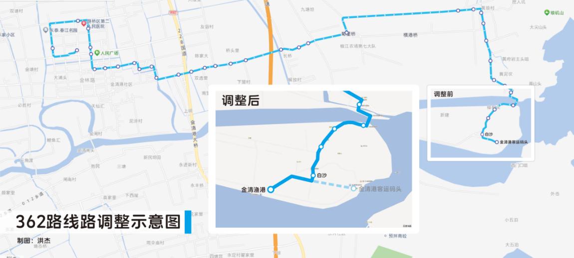 為優化公交線網,方便市民出行,362路計劃于2024年8月1日起,由“金清客運中心——金清港客運碼頭”調整為“金清客運中心——金清漁港”。其他不變。
