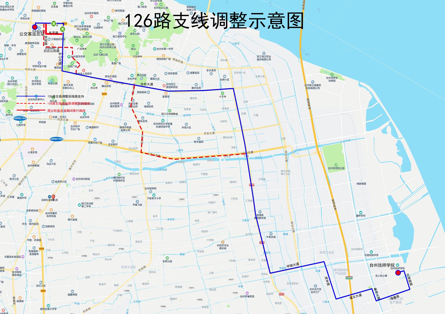 為優化臺州技師學院配套公交線網,結合125路夜間客流狀況。決定自2024年9月26日起對126支線及125路末班時間進行調整。具體如下: