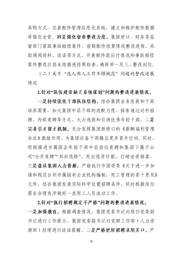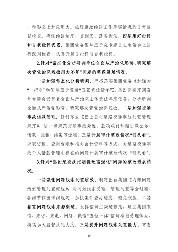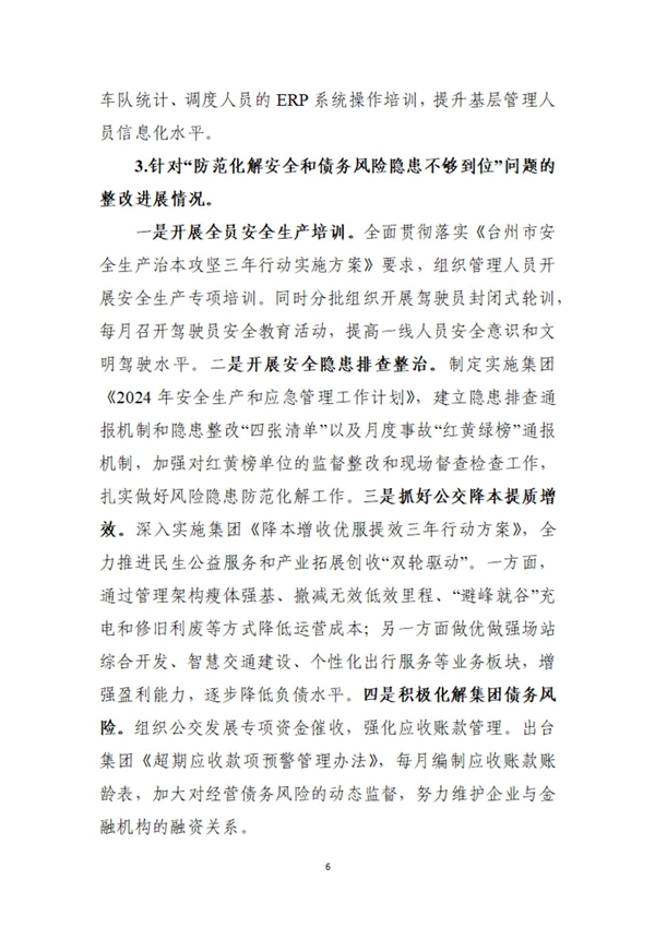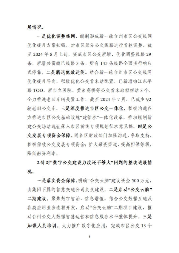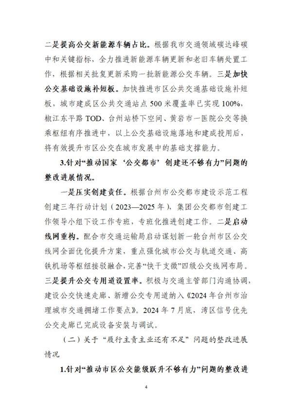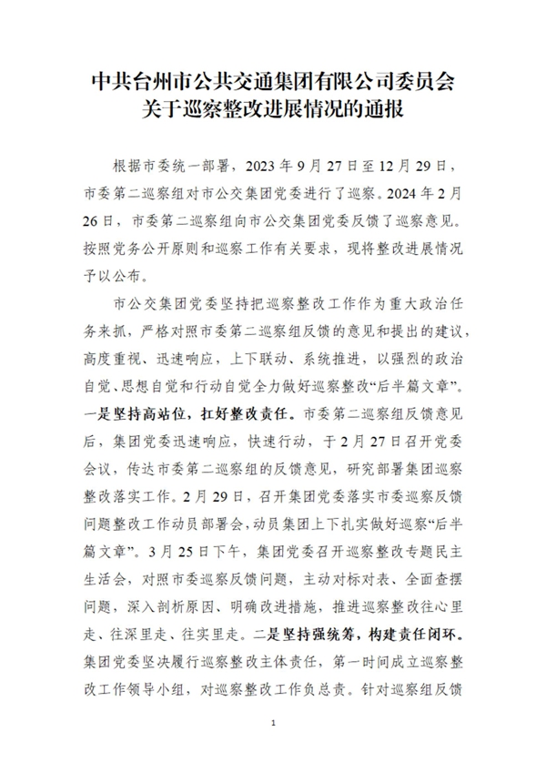 中共臺州市公共交通集團有限公司委員會 關于巡察整改進展情況的通報