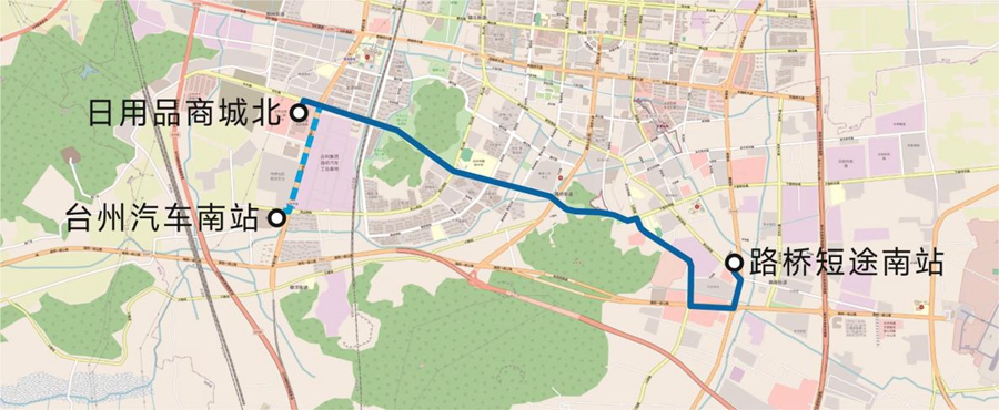 “路橋短途南-臺州汽車南站”變更為“路橋短途南站-公交商城北站”。