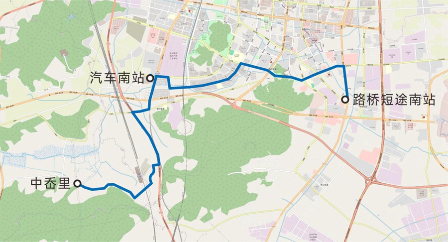“公交竿蓬站-路橋短途南站”變更為“公交竿蓬站-路橋小學”。