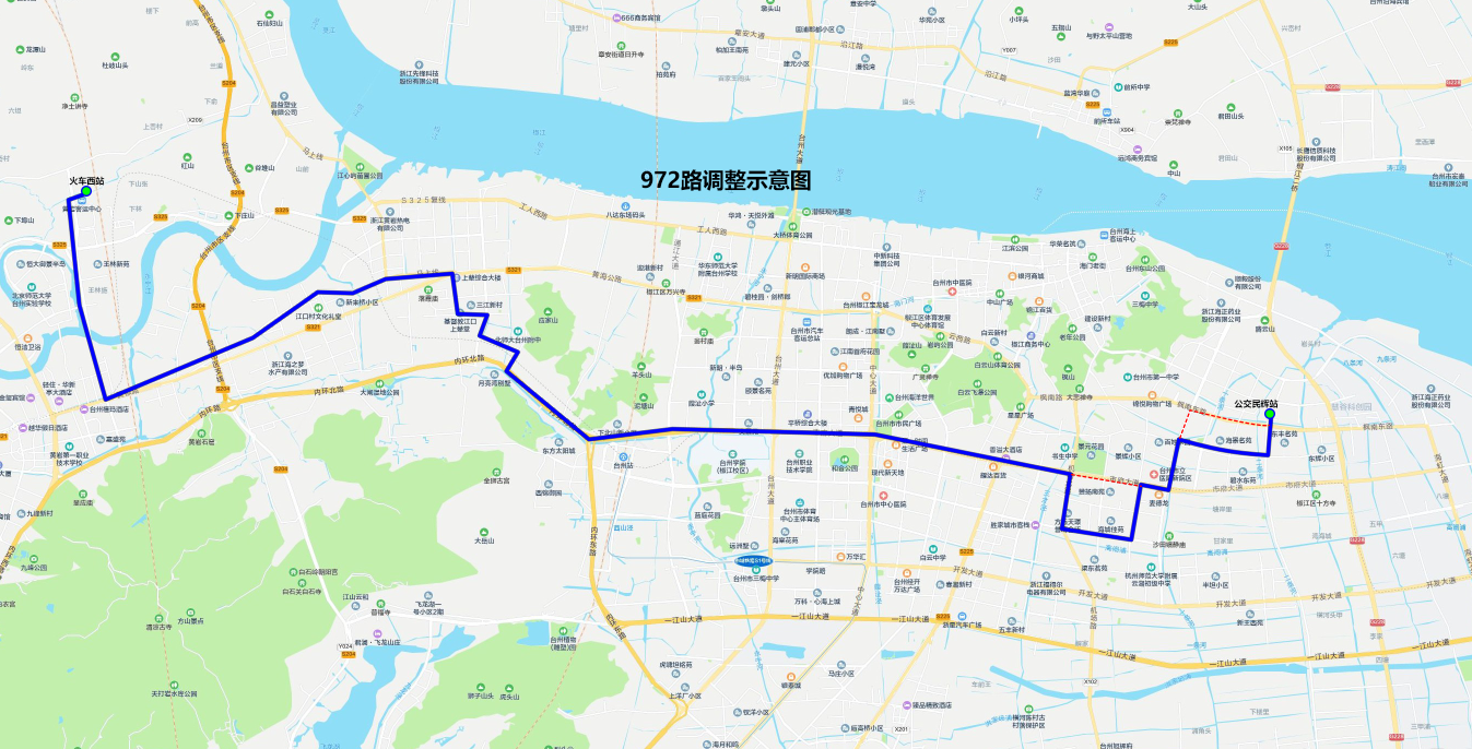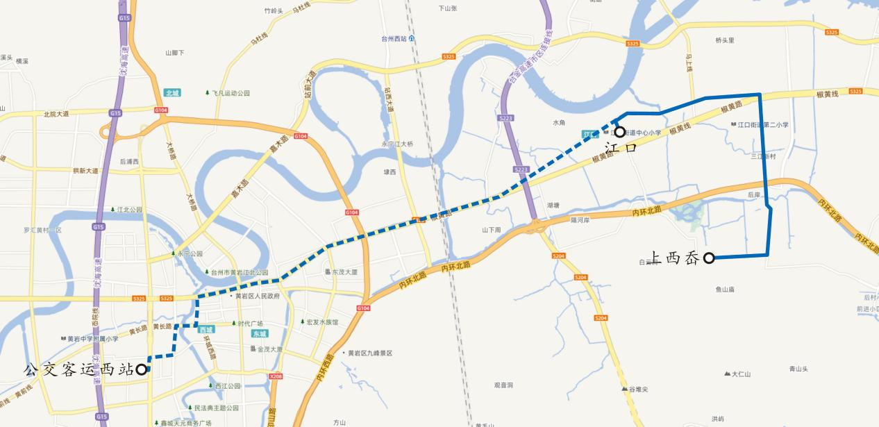 由“臺州客運西站—上西岙”變更為“江口街道辦事處—上西岙”。