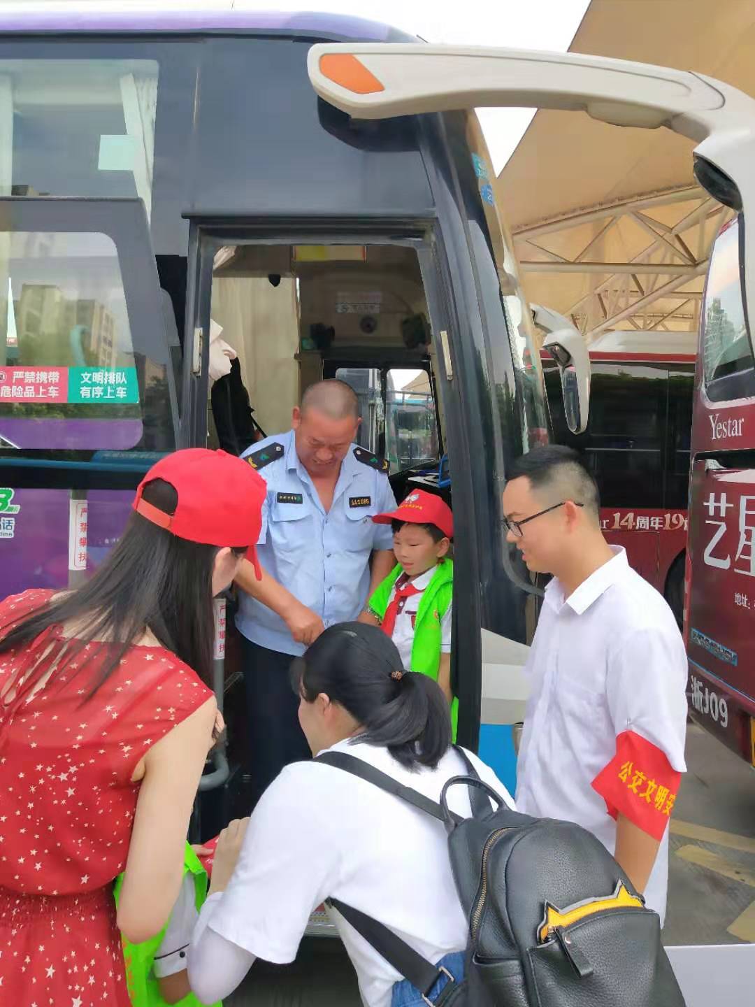 7月26日上午,臺州公交集團聯合臺州交通廣播,帶領椒江青少年宮“青苗苗”青少年志愿者服務隊的小朋友,在椒江客運總站開展送清涼活動?;顒右婚_始,公交集團巴士公司副總經理兼一公司經理金剛現場電話連線,通過廣播向在烈日中堅守崗位,為市民出行保駕護航的公交一線員工表示感謝和慰問。隨后,志愿者小朋友們親手將礦泉水、飲料和清涼禮包等慰問品送到公交駕駛員和修理工的手中,并道了聲:“你們辛苦了?!?nbsp;