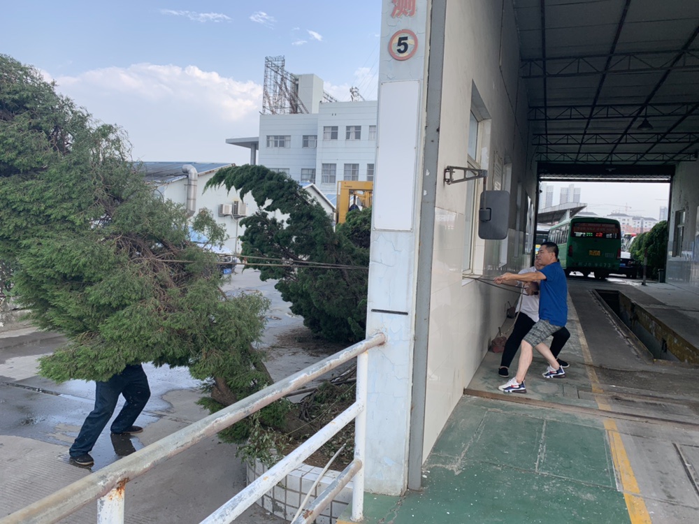 8月12日,巴士公司二公司黨員班子組成“先鋒隊”,作為救災向導,他們顧不上連夜抗臺帶來的疲憊,第一時間投入黃巖客運西站場站的災后恢復工作。扶正倒伏樹木、切割占道的枯樹斷枝、整理消防沙箱、恢復場站照明、修復場站標識牌、清運路面及綠化上的各種垃圾,以最快速度修復災后現場,保證公交有序運行。